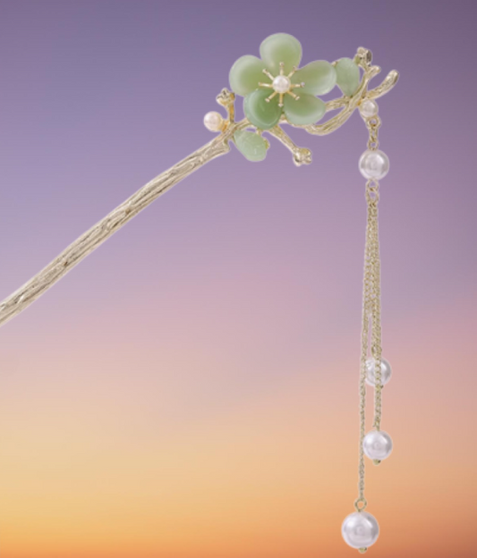 Moonlit Emerald Bloom: A Timeless Blossom Hairpin/ hair stick