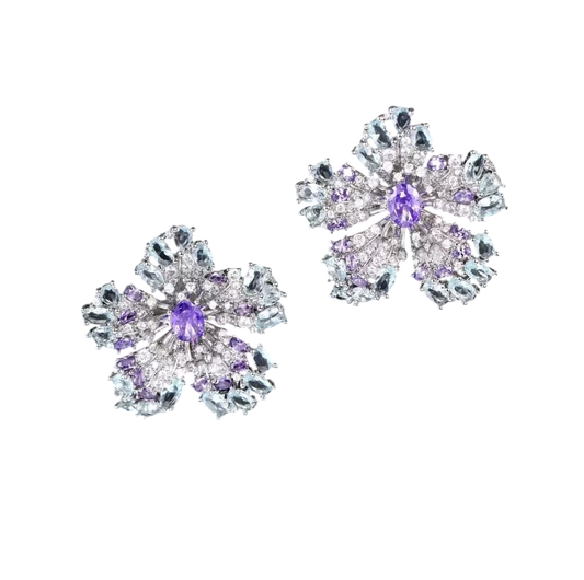 Whispers of Twilight: Enchanted Petals of Azure and Amethyst Earrings