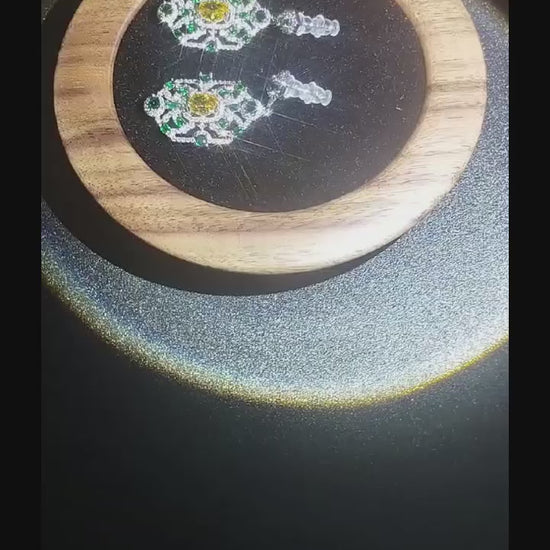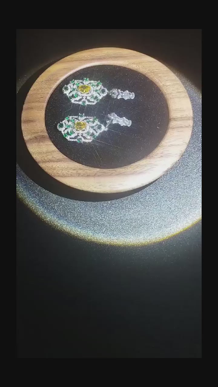 Complementing the serene glow of the green stones are the vibrant yellow gemstones that adorn these earrings. Radiating warmth and joy, the yellow gemstones bring an aura of positivity and optimism. Associated with the sun's radiant light, they are believed to inspire creativity and confidence. As the golden hues catch the light, they serve as a reminder that happiness is not just a destination, but a state of being. With these earrings sparkling by your side, may every moment be infused with laughter, love, and the exhilarating thrill of new experiences.