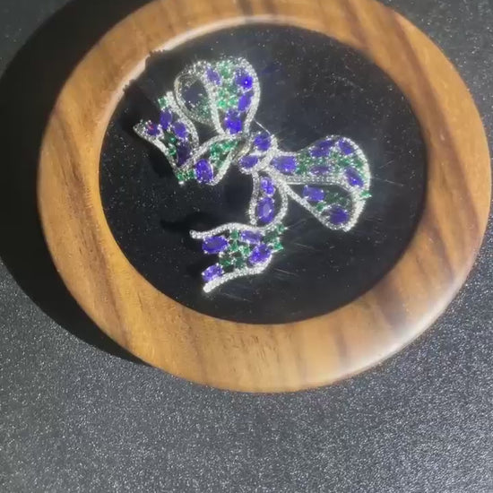 The vibrant green crystal signifies vitality and growth, resonating with the spirit of renewal and energy found in nature. Just as green symbolizes life's flourishing potential, this brooch invites the wearer to embrace the joy and zest for life. In contrast, the regal purple crystal represents royalty, dignity, and spiritual depth. In Chinese symbolism, purple embodies a harmonious balance in nature and conveys an air of sophistication and refinement. Together, these colors create a harmonious complement that not only enhances the wearer's ensemble but also infuses their spirit with positivity and vitality.