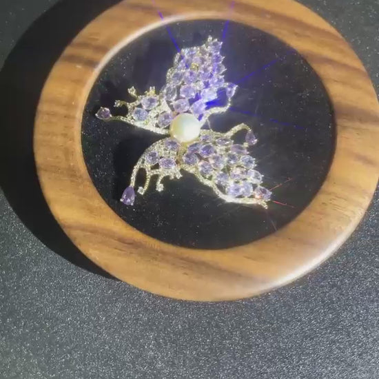Elevating your accessory collection with the exquisite Royal Pearl Butterfly Brooch. This stunning piece harmoniously blends elegance and symbolism, capturing the essence of passion and sophistication. Crafted meticulously, the brooch features lustrous pearl that radiates a soft, opalescent glow, gracefully complemented by the regal hue of royal purple. This color, historically reserved for emperors and royal families, signifies wealth, power, and deep spirituality, embodying the essence of imperial importance in ancient China.